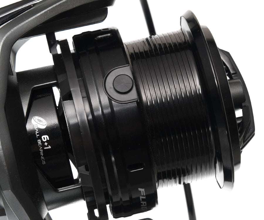 Традиционно надёжность и высокие тяговые характеристики катушек Flagman Legend Feeder сочетаются с доступной ценой для широкого круга рыболовов. Их корпус и ротор изготовлены из высокопрочного пластика, мощная главная пара и шарикоподшипники, установленные в самых нагруженных точках, обеспечивают значительный ресурс механизма. Идеально ровную укладку лески обеспечивает усовершенствованный механизм с «бесконечным винтом», а устойчивый к истиранию ролик лесоукладывателя системы Anti-Twist предотвращает её перекручивание. Прочный корпус и силовой механизм позволяют без проблем работать с тяжёлыми кормушками и вываживать крупную рыбу. Ёмкость облегчённой алюминиевой шпули Flagman Legend Feeder FD оптимальна для работы с тонкими лесками и шнурами. Шпуля оснащена круглой металлической клипсой, которая обеспечивает надёжное и безопасное клипсование для лески или шнура. Конический буртик шпули значительно уменьшает трение и повышает дальность заброса. Передний фрикцион обладает точной плавной регулировкой и отличается стабильной работой. Алюминиевая рукоять имеет Т-образный обрезиненный кноб, который гарантирует надёжное и уверенное удержание во время работы с катушкой.