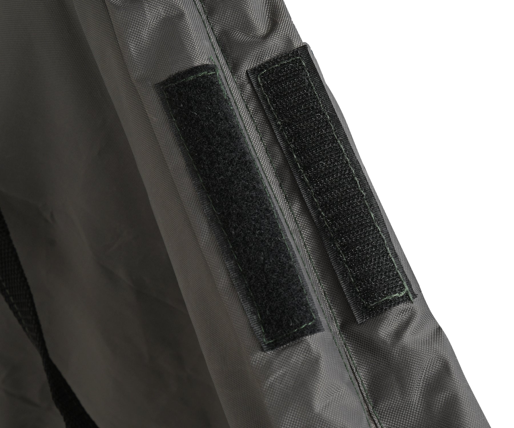 Разработана в соответствии с высокими требованиями к безопасности рыбы. Изготовлена из полиэстера 210D и мягкой сетки высокой плотности, не травмирующей рыбу и позволяющей свободно стекать воде. Сумка по всей длине усилена прошивкой из двух прочных лент, которые гармонично переходят в прочные надёжные ручки для взвешивания. Сумка оснащена 2 боковыми молниями с фирменными пуллерами для удобства пользования и липучками, для их надёжной фиксации.