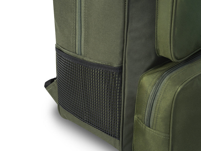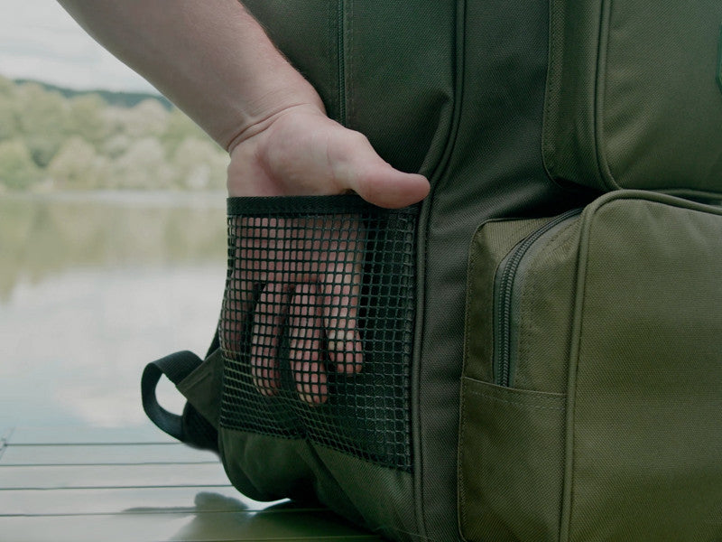 Передние карманы предлагают дополнительное пространство для хранения мелких аксессуаров, документов или небольшой коробки для снастей. Кроме того, по бокам расположены карманы из прорезиненной сетки, куда можно положить бутылку или термос с любимым напитком. Каждый карман оснащён качественной молнией с яркими бегунками, которые легко найти даже в темноте.