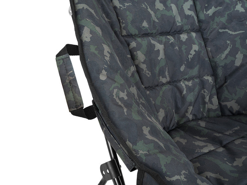 Максимальный комфорт обеспечивается мягким сиденьем с плотной подкладкой как в центре, так и по краям. Износостойкий материал 600D вместе с фирменным камуфляжем BANX, запатентованным Delphin, придаёт креслу уникальный внешний вид и отличную долговечность.