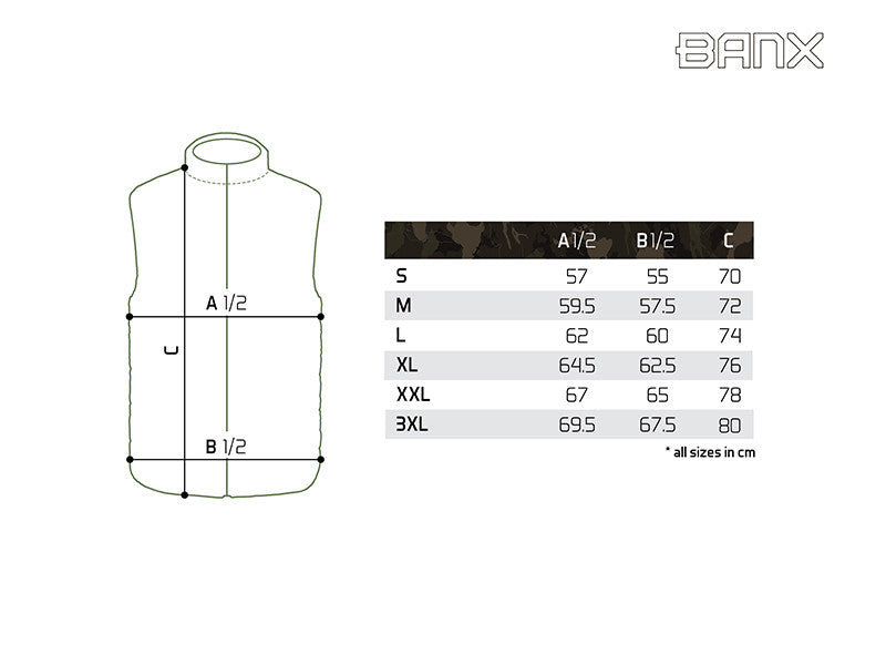Чёрный дизайн дополнен нашим фирменным камуфляжем BANX. Жилет подходит как для рыбалки, так и для повседневной носки.