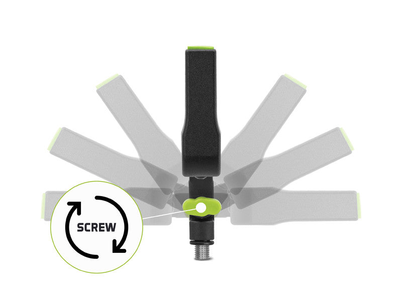 Secțiunea inferioară are o balama din plastic care poate fi rotită pentru a ajusta unghiul suportului în funcție de nevoile și condițiile apei. EvaFRONT are un filet universal, compatibil cu majoritatea bețelor de pescuit, suporturilor pentru lansete feeder și brațelor feeder.