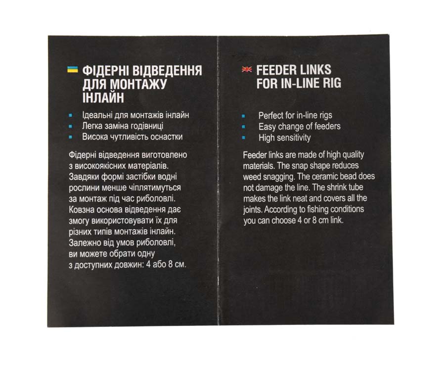 În funcție de condițiile de pescuit, puteți alege una dintre lungimile disponibile ale Flagman Feeder Hard Links: 4 sau 8 centimetri.