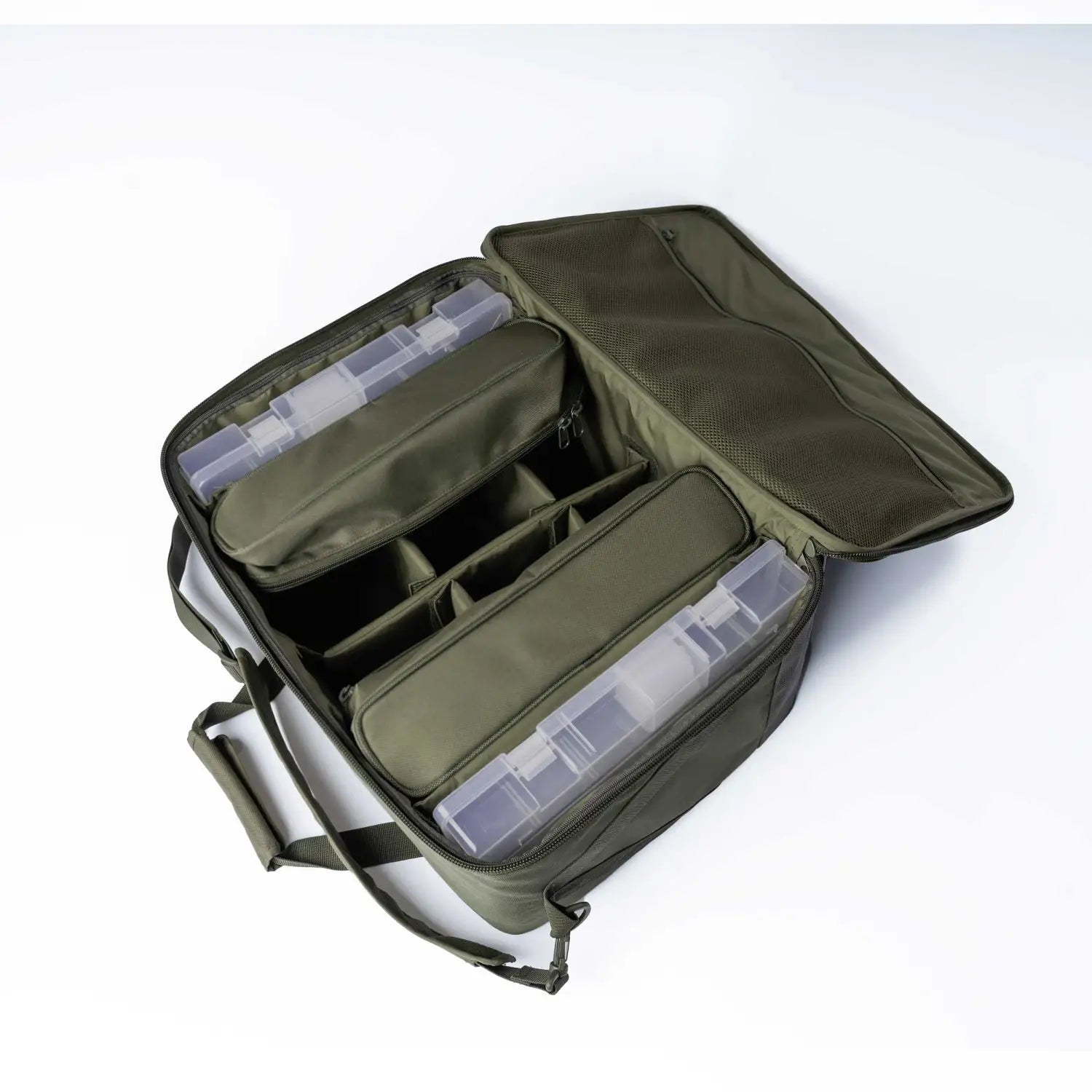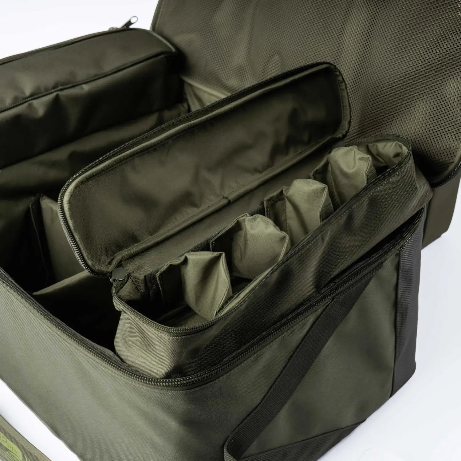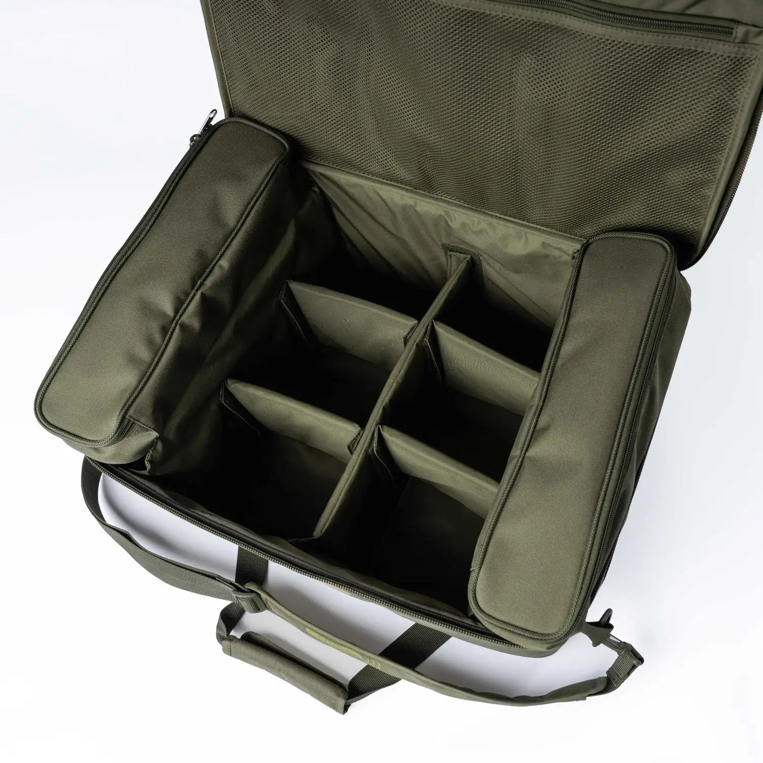 Geanta de pescuit la crap Akropolis RSK-1b (fără cutii) este concepută pentru depozitarea și transportul a 6 role de undițe de crap, role de rezervă, markeri, rachete pentru momeală și alte accesorii. Dispune de un mâner de transport, o curea de umăr confortabilă și un buzunar extern și unul intern. Rolele sunt separate prin separatoare mobile în centrul genții. Pe laterale, există module detașabile cu fermoar pentru accesorii de pescuit. Sunt disponibile și cutii mari și mici din plastic pentru accesorii . Acestea vă vor ajuta, de asemenea, să vă faceți excursiile de pescuit confortabile.