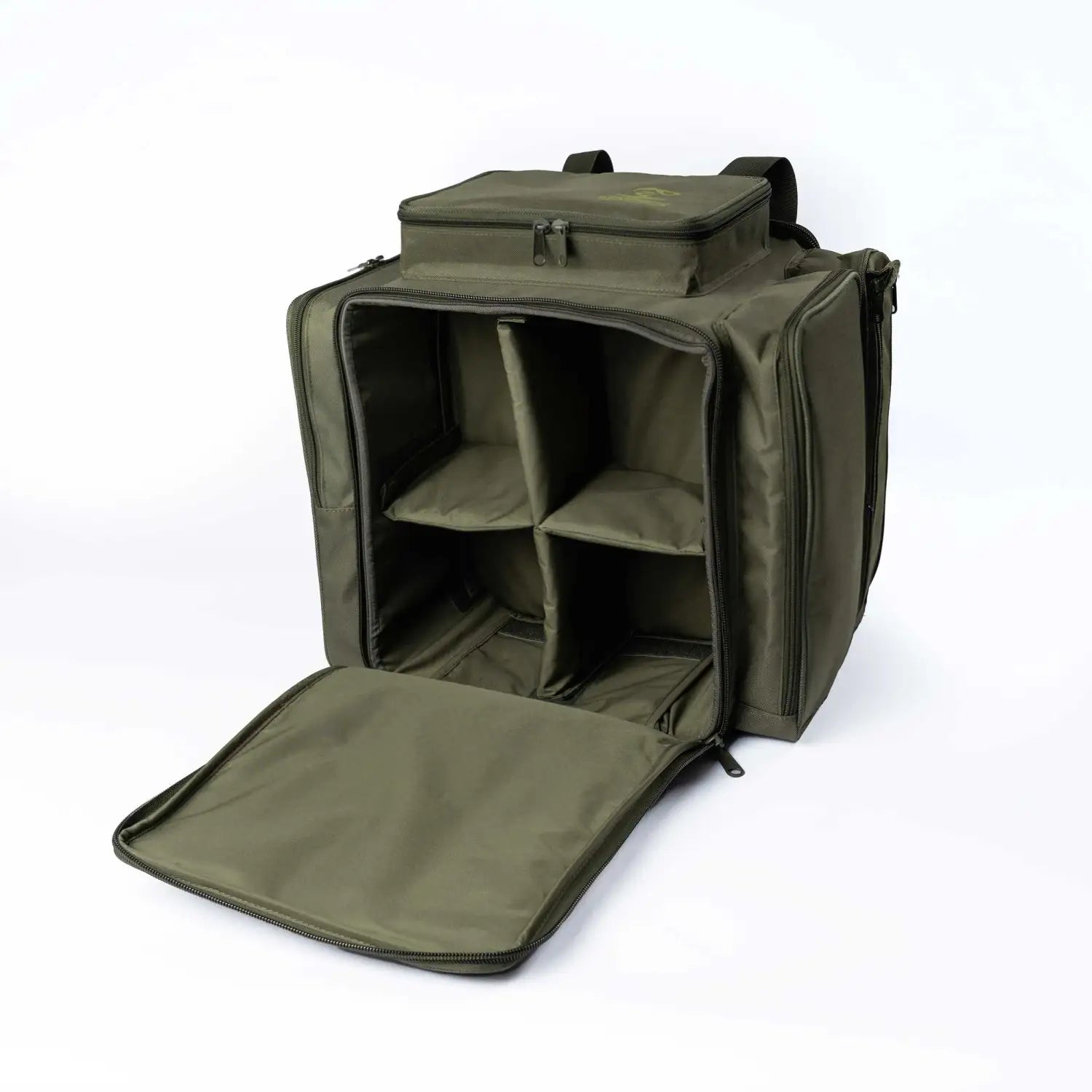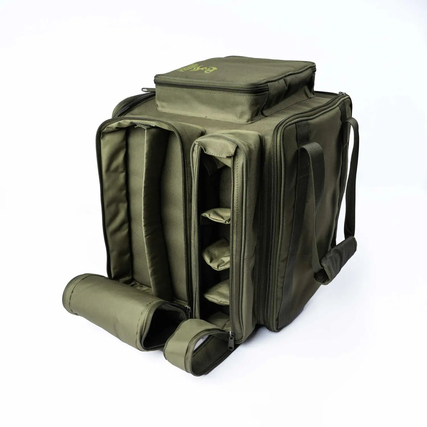 Geantă de pescuit crap RSK-2 pentru transportul a 2 cutii de pescuit din plastic, 8 role de undițe de crap și accesorii. Are compartimente exterioare pentru bobine de rezervă, markeri, rachete de momeală și alte accesorii. Are un mâner pentru transport. Echipată cu cutii multifuncționale: