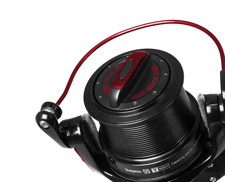 Corpul relativ compact, fabricat din plastic armat și cu un design elegant în roșu mat și negru, este echipat cu o bobină conică puțin adâncă. O muchie specială de lansare face pescuitul cât mai confortabil, rapid și precis posibil.