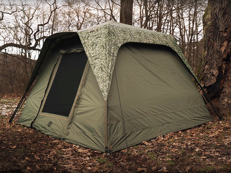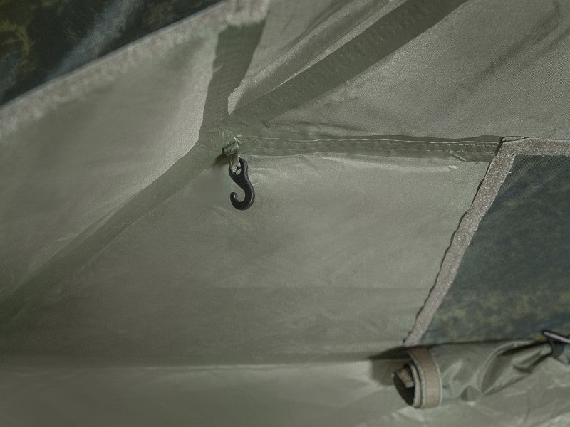 În interior există suficient spațiu pentru a găzdui două paturi de camping, lăsând în același timp loc pentru mișcare, genți și tot ce ai nevoie pentru o ședere confortabilă lângă apă. Dacă este necesar, cortul poate găzdui chiar și trei paturi de camping, dar CUBICON nu este doar un „dormitor”. Cu o înălțime de 190 cm și un interior spațios, poate fi folosit ca adăpost de zi sau ca zonă de gătit. Este un adăpost cu adevărat multifuncțional și numai tu decizi cum exact să îl folosești.