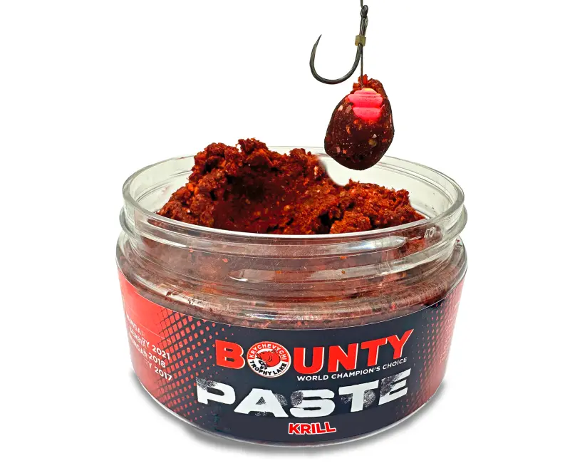 Pasta BOUNTY "PASTA" eliberează particule ușoare care se ridică la suprafața apei, creând un semnal vizual și gustativ pentru crap, în timp ce particulele grele creează un loc gustos sub cârlig.