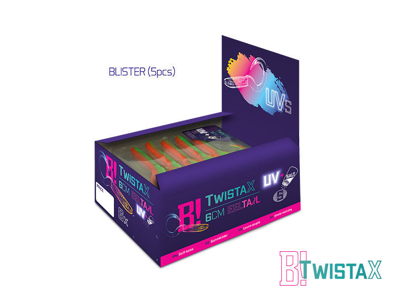 TwistaX Eeltail este disponibil într-o gamă largă de opțiuni de culori eficiente, selectate pe baza rezultatelor testelor pe termen lung în apele europene. Mai mult, culorile sunt acum active la UV, permițând nălucii să reflecte mai multă lumină sub apă și să fie vizibilă la adâncime sau în condiții de lumină slabă.