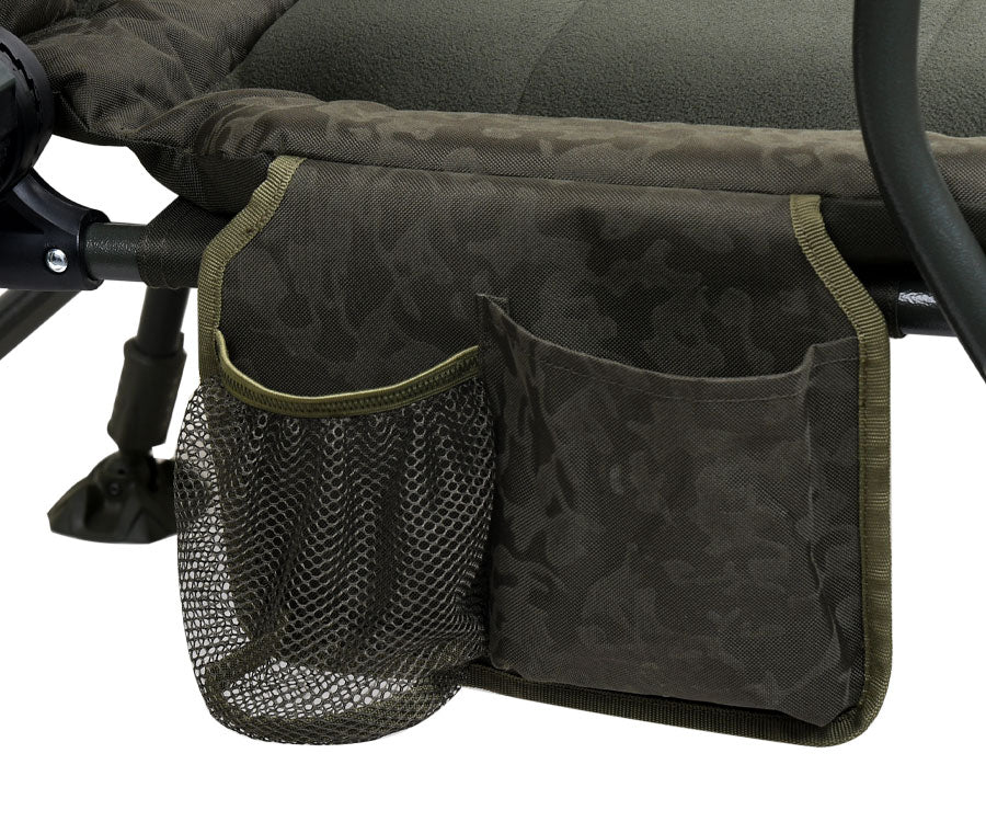 Datorită cadrului robust și durabil din oțel și aluminiu, scaunul poate suporta cu ușurință sarcini grele de până la 150 kg. Tapițeria unică de camuflaj Carp Pro este fabricată din material textil 650D durabil, hidrofug și microfleece moale. O tetieră detașabilă, reglabilă pe înălțime, și inserțiile moi din spumă cu memorie din tetieră, șezut și spătar asigură o poziție naturală a corpului, facilitând sesiuni lungi de pescuit fără oboseală. Pernuțele moi și călduroase din neopren de pe cotiere și un buzunar convenabil pentru băuturi și gadgeturi vă vor completa relaxarea și confortul suprem în timpul șederii. Scaunul Carp Pro Diamond Bliss se montează rapid, iar unghiul spătarului este ușor și convenabil reglabil pe o gamă largă. Patru picioare telescopice cu mecanisme de blocare sigure și ușor de utilizat permit poziționarea ușoară a scaunului pe suprafețe neuniforme sau înclinate. Picioarele sunt prevăzute cu tocuri extinse, articulate, care împiedică scufundarea scaunului în teren moale și oferă stabilitate suplimentară pe suprafețele înclinate. La transport, scaunul CP Diamond Bliss este compact și ușor de transportat.