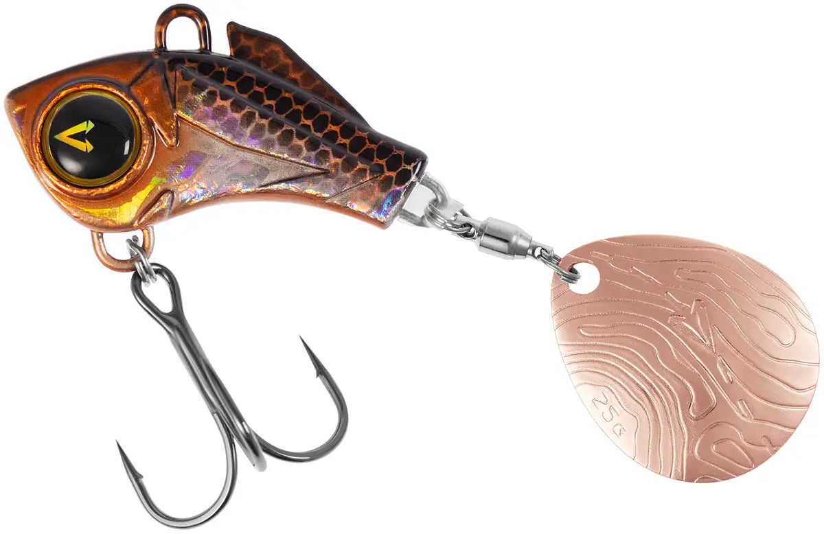 Combină un spinner, un pilker și un ratlin în funcționare, dar în același timp are propriile caracteristici. Un corp compact și greu de plumb, în formă de pește, vă permite să efectuați cele mai lungi lansări posibile. Chiar și un vânt din față sau lateral nu vă va împiedica să livrați momeala în punctul dorit. Spinnerul cu coadă folosește o petală standard în formă de lacrimă, montată pe un vârtej cu rulment, care asigură o pornire ușoară a momelii și o funcționare stabilă a acesteia. O cambrică specială în punctul în care este atașată petala împiedică răsucirea acesteia în timpul lansării.
